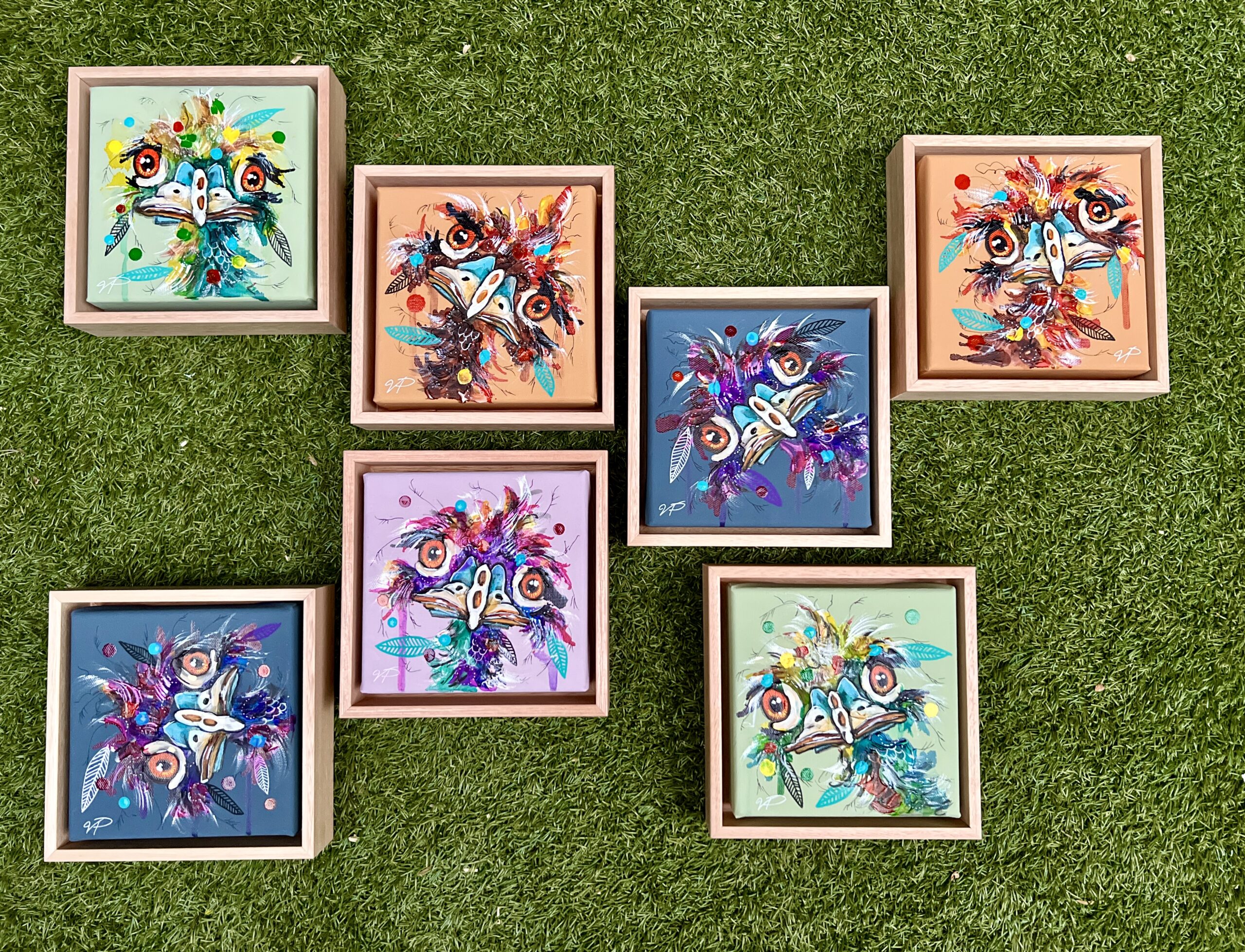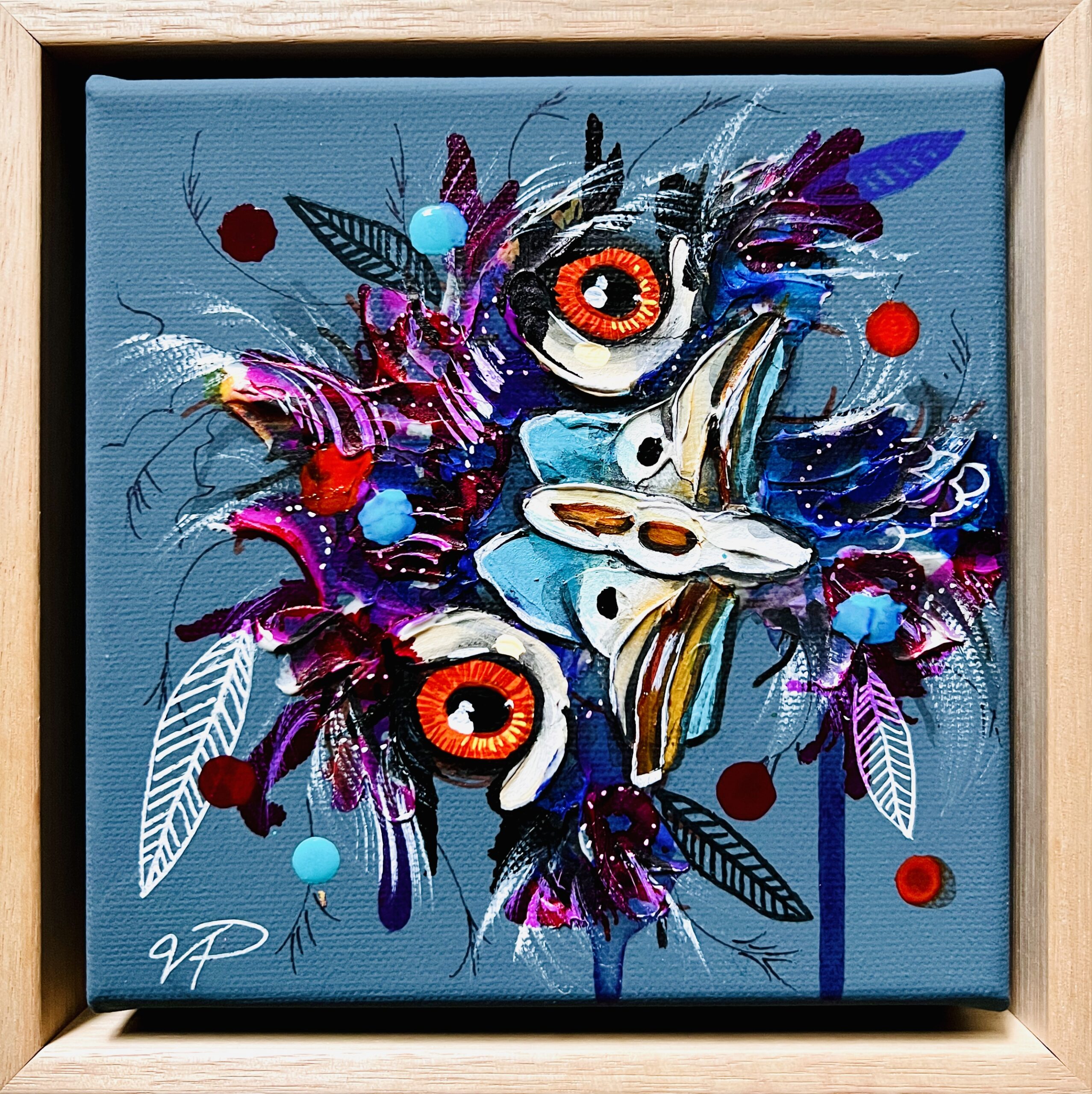 Mixed media original painting on canvas with natural timber floating frame.